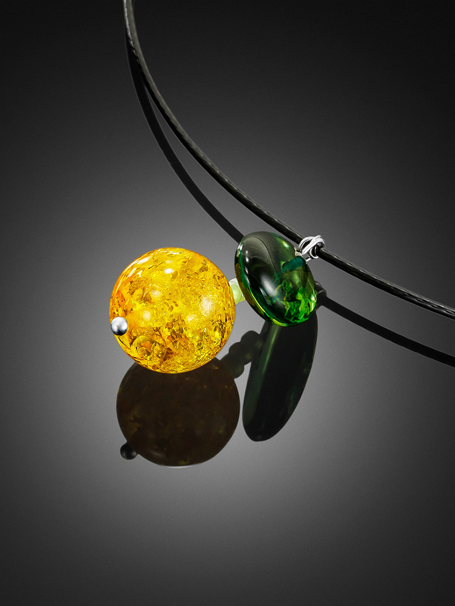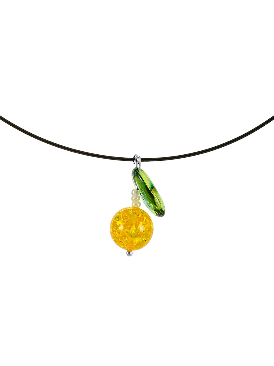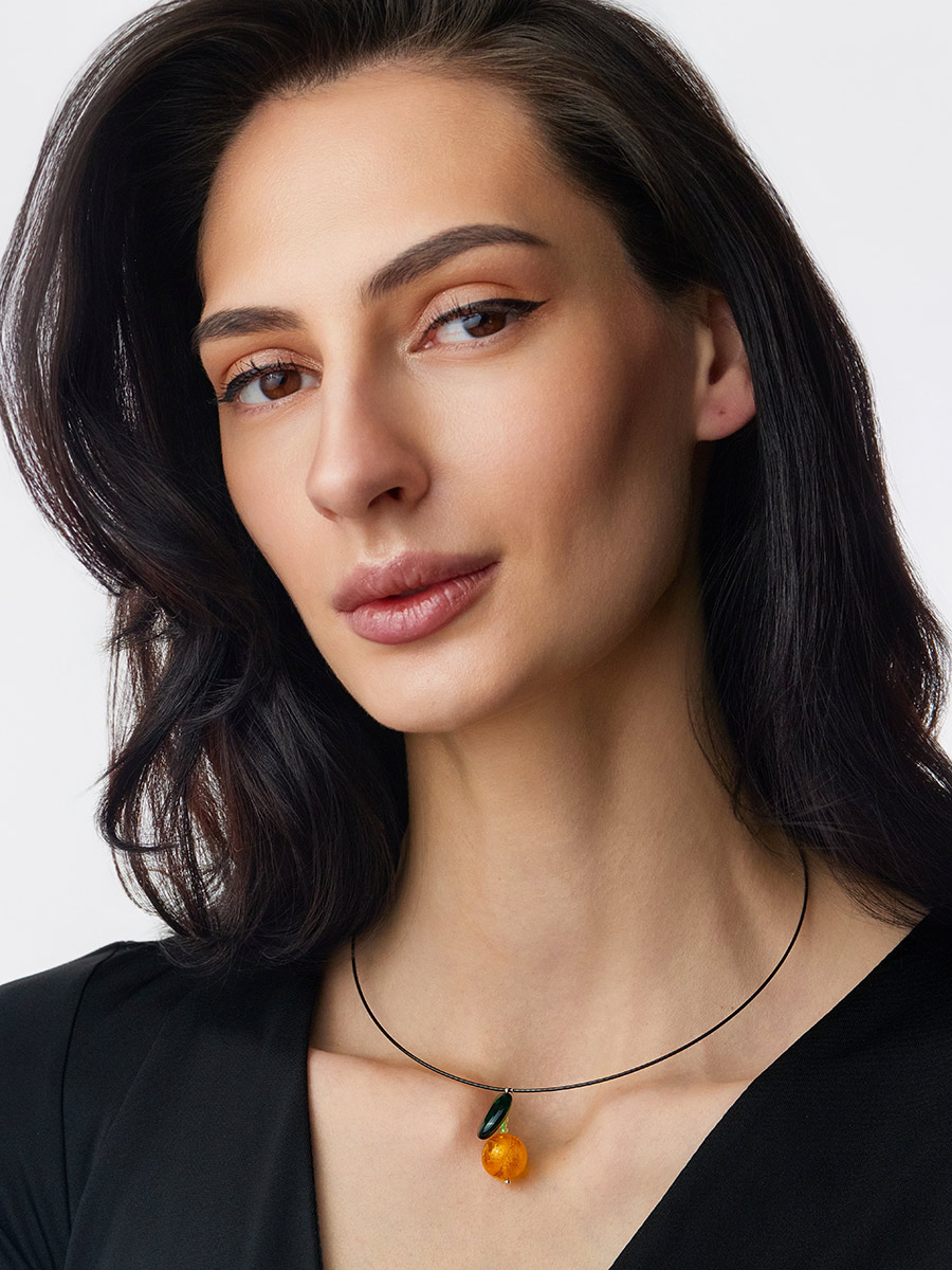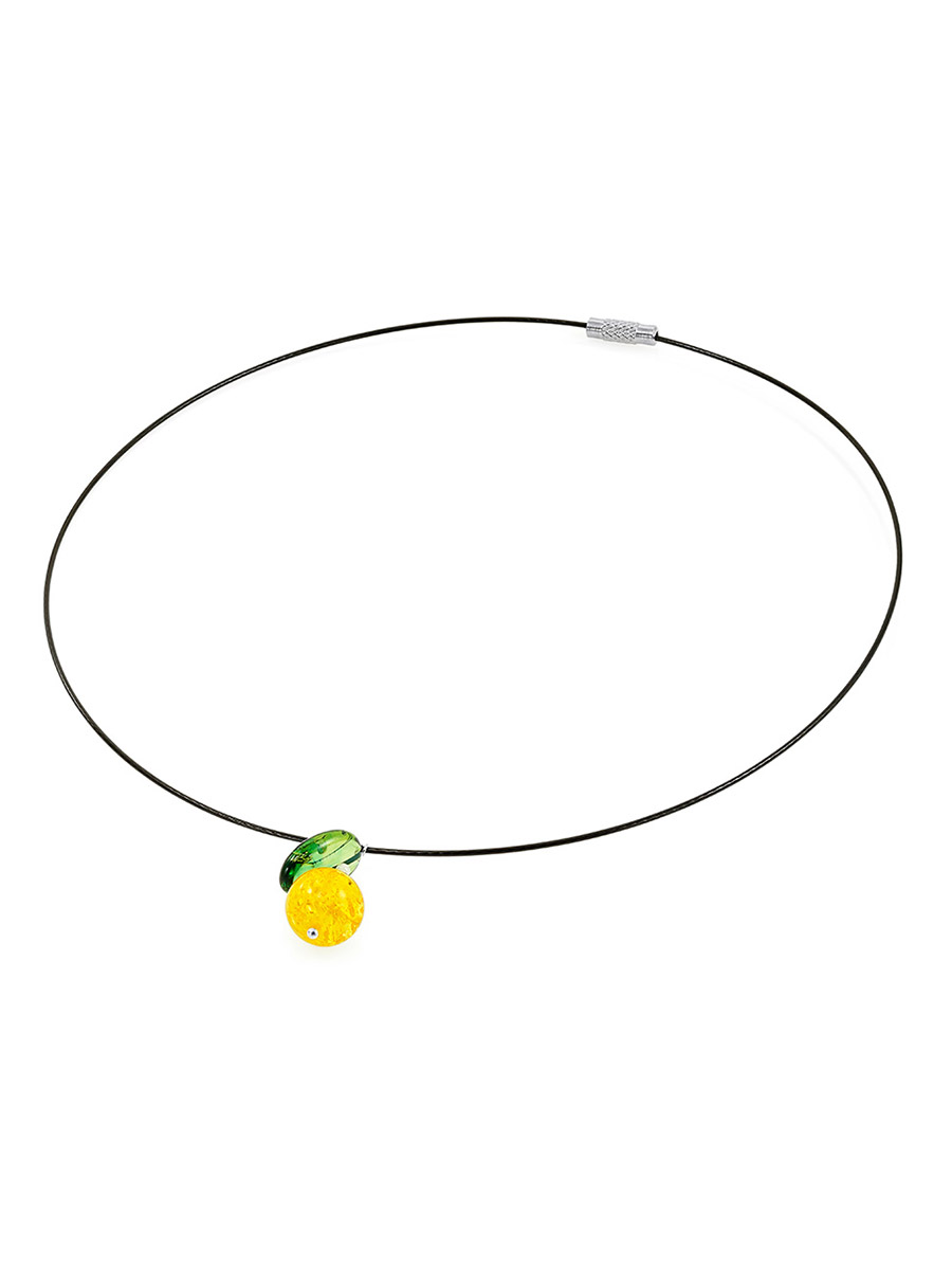 Колье-обруч с подвеской из натурального янтаря «Яблочко»