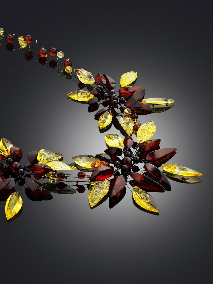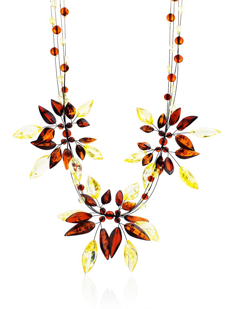 Колье «Первоцвет» из лимонного и вишнёвого янтаря