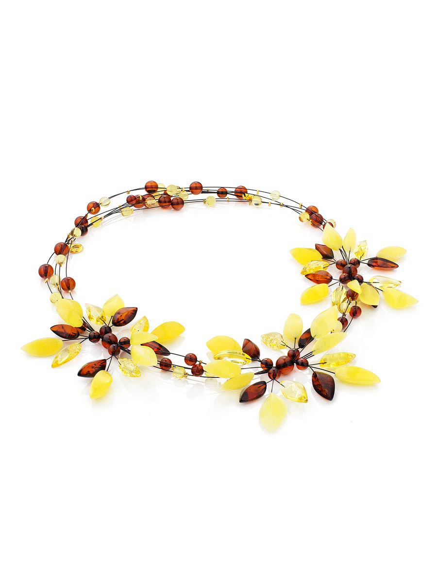Колье «Первоцвет» из янтаря трёх цветов