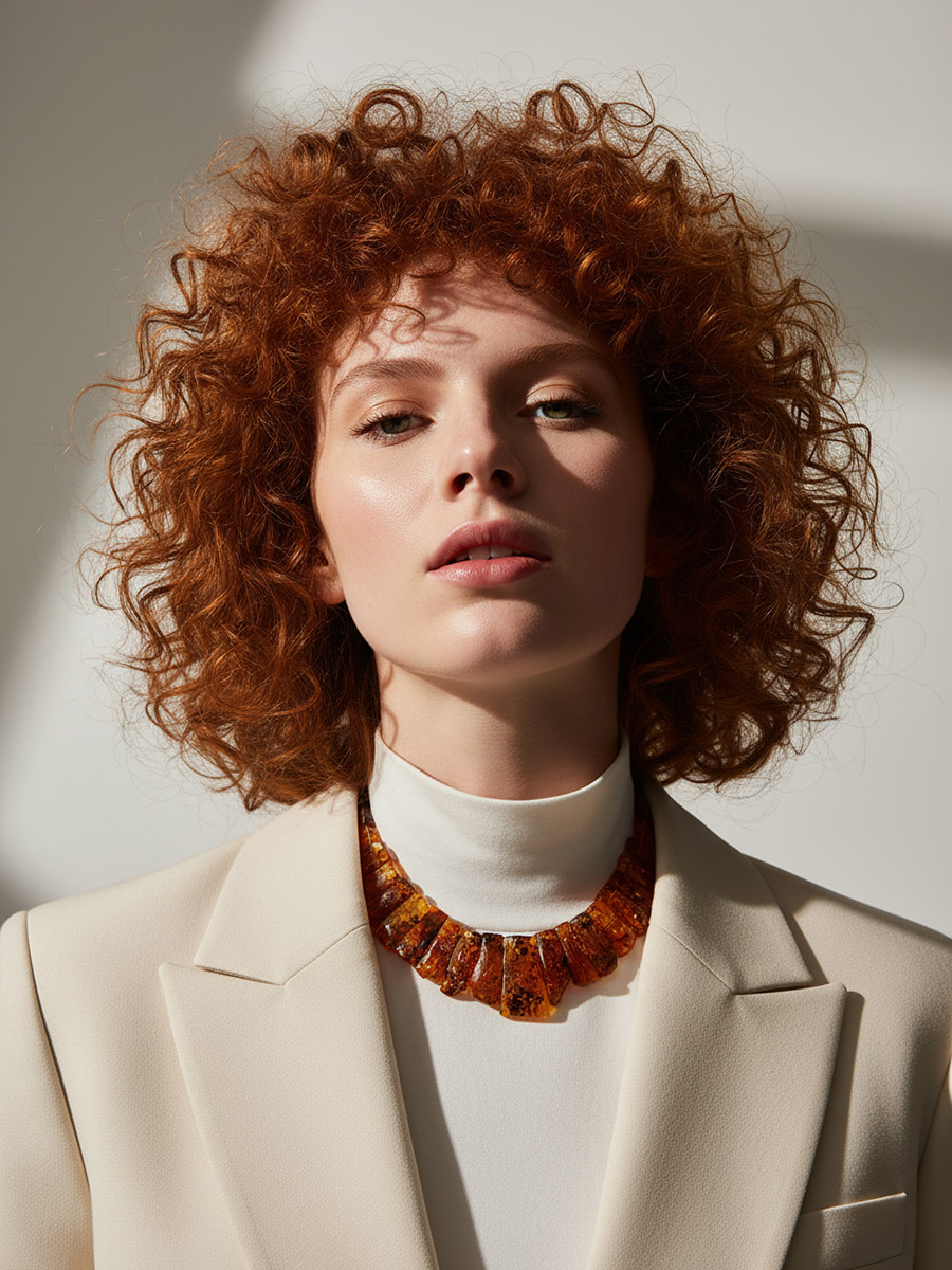 Колье «Помпеи» из натурального балтийского янтаря с глянцевой поверхностью
