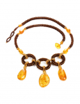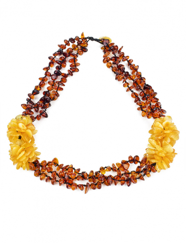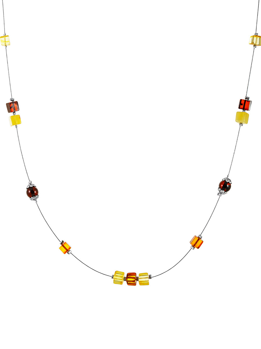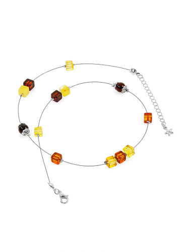 Колье «Рафинад» с натуральным янтарём разных оттенков на леске