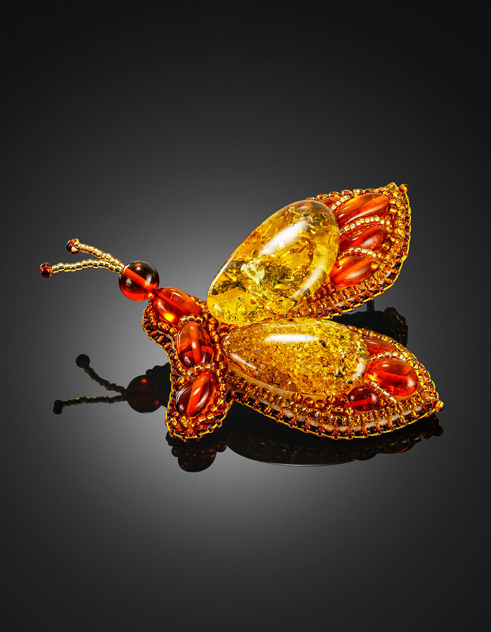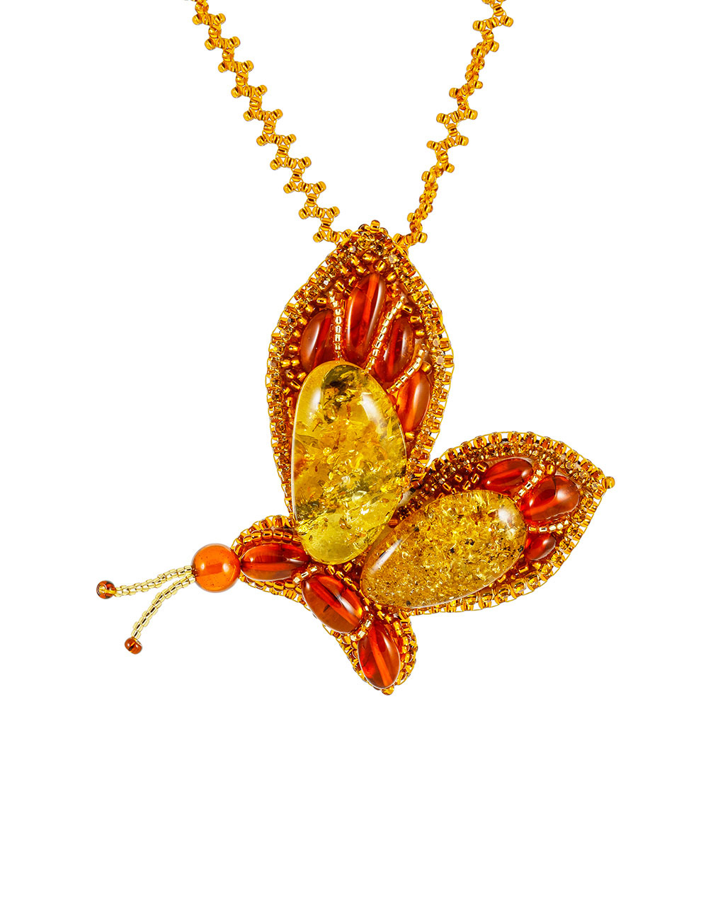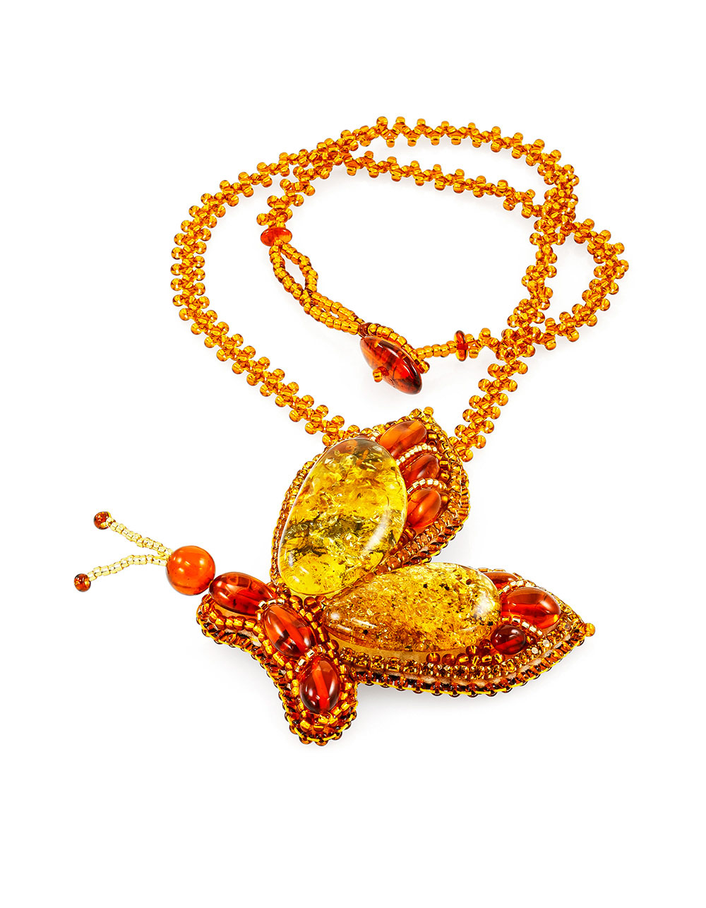 Колье с брошью-бабочкой «Лукоморье» из янтаря и бисера