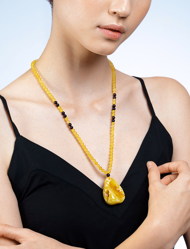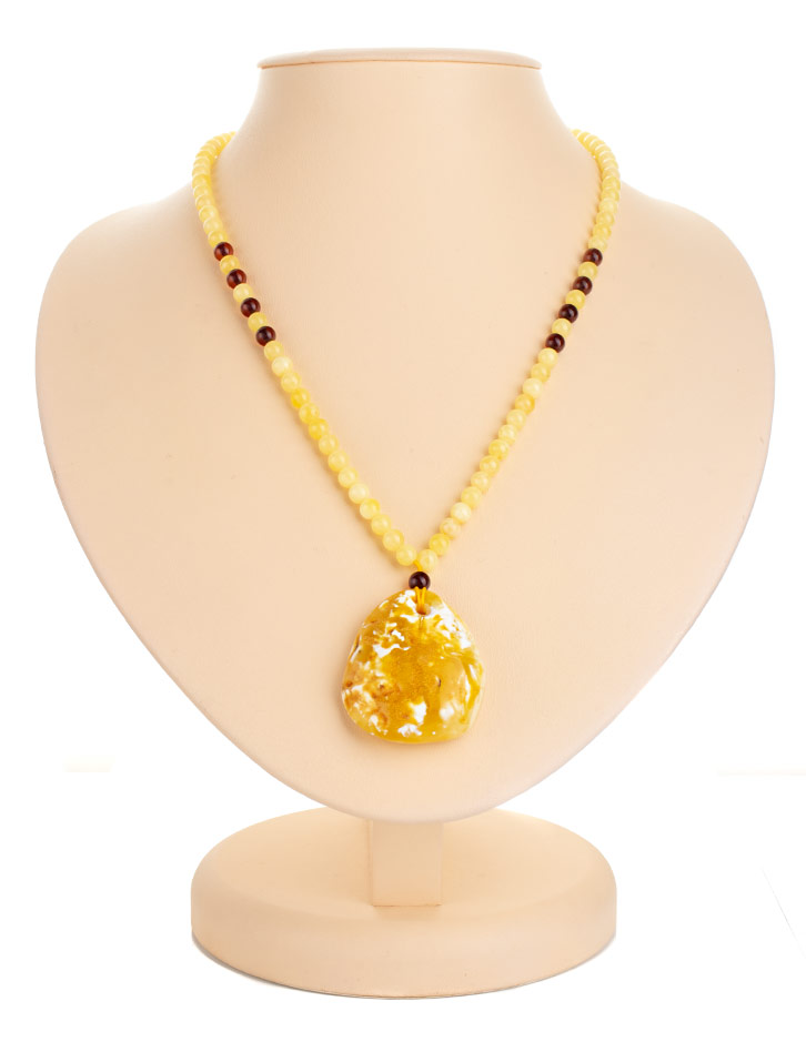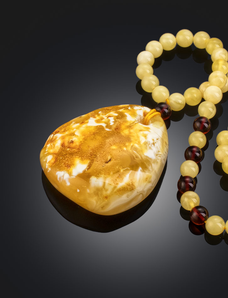 Колье с подвеской из натурального цельного пейзажного янтаря «Лаура»