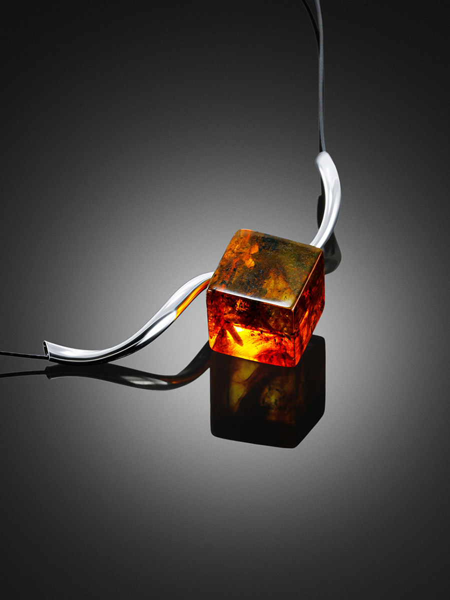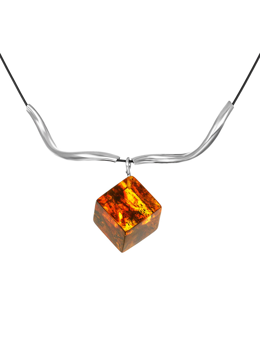 Колье-струна с янтарной подвеской-кубиком «Рафинад»