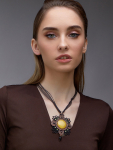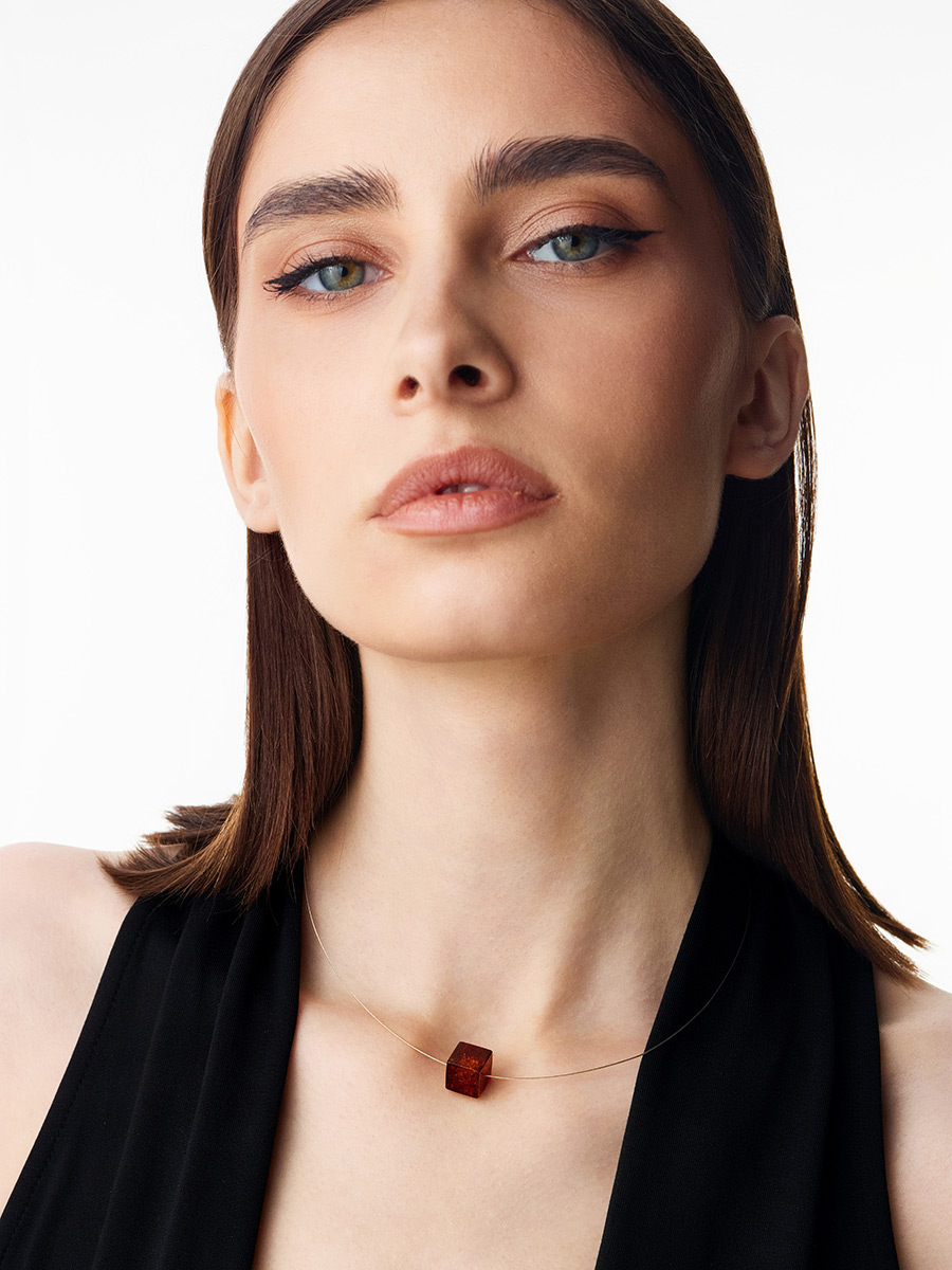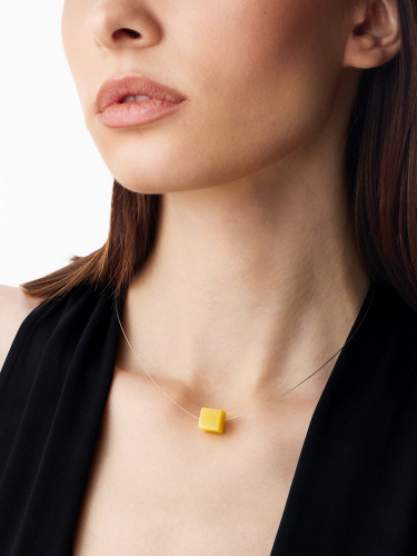 Колье-струна с янтарной подвеской-кубиком «Рафинад»