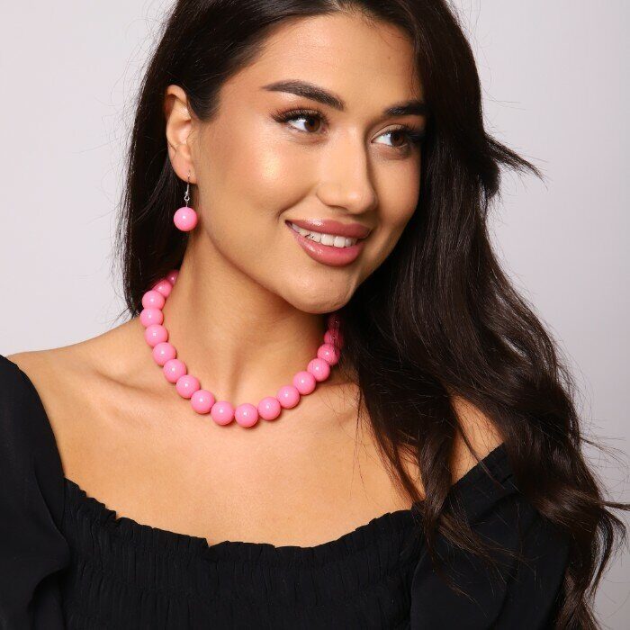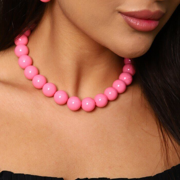 Комплект бусы и серьги "Карамель", цвет бледно-розовый,Уценка, арт.08.1565