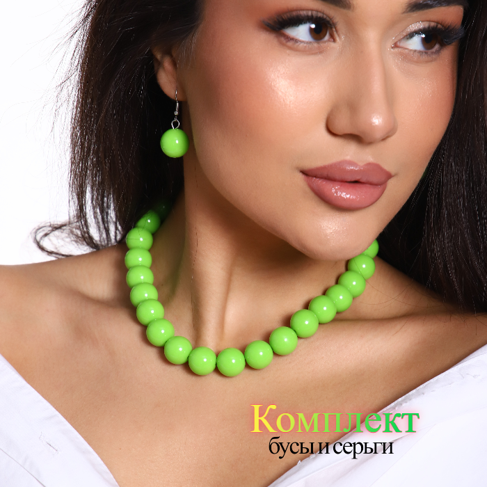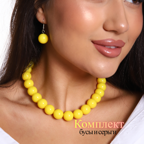 Описание Комплект: бусы и серьги. Состав: пластик. Размер бус: 36 см (+доп.цепочка 7,5 см) , серьги: 3,5*1,5 см , замок: петля.