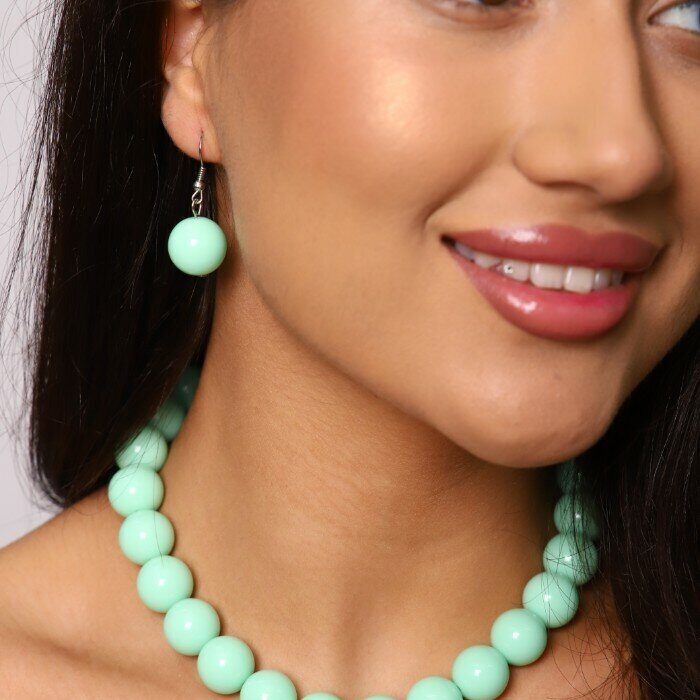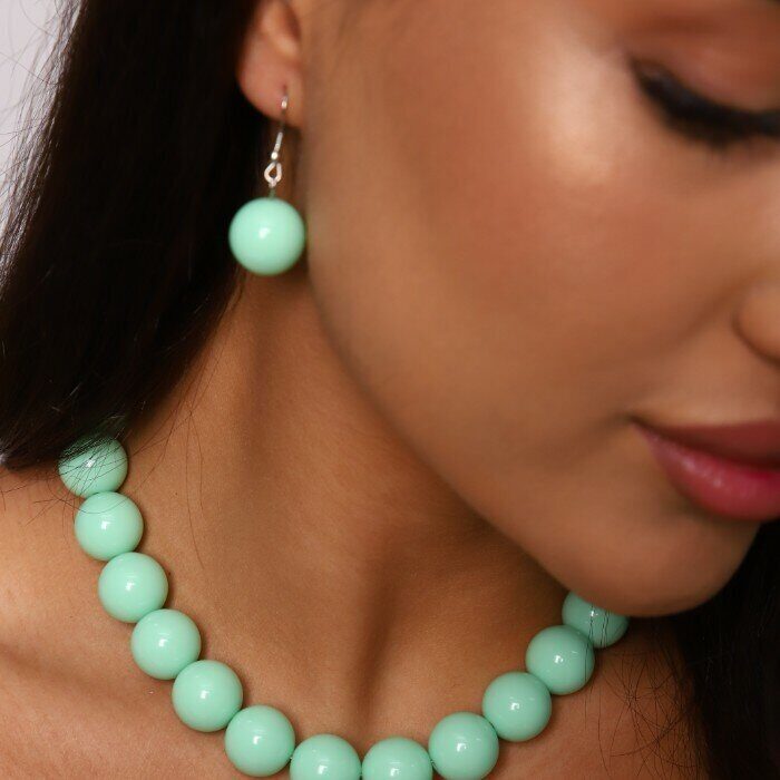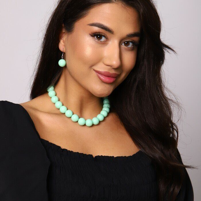 Комплект бусы и серьги "Карамель", цвет мята, арт.018.541