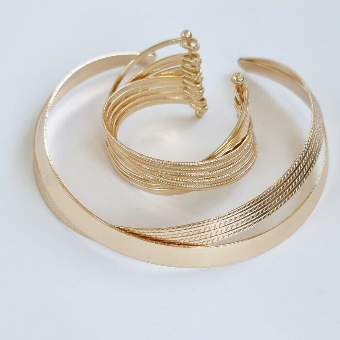 Комплект: колье жесткое разъемное на шею и браслет, цвет: золотистый, арт.204.159