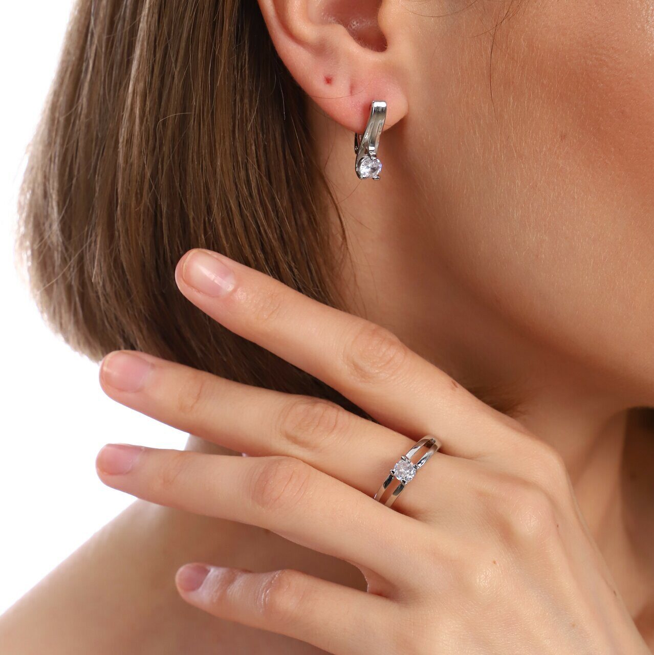 Описание Размер кольца: 17. Размер серёжек: 1,8*0,5 см. Замок: английский. Материал: металл, кристалл. Вес: 6 гр.