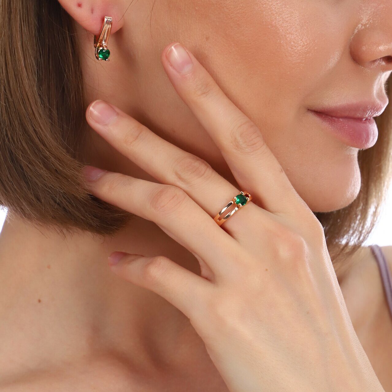 Комплект коллекция "Дубай", покрытие позолота с камнем, цвет зеленый, серьги, кольцо р-р 17, Е4164, арт.747.738