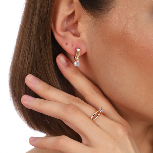 Описание Размер кольца: 17. Размер серёжек: 1,8*0,5 см. Замок: английский. Материал: металл, кристалл. Вес: 6 гр.