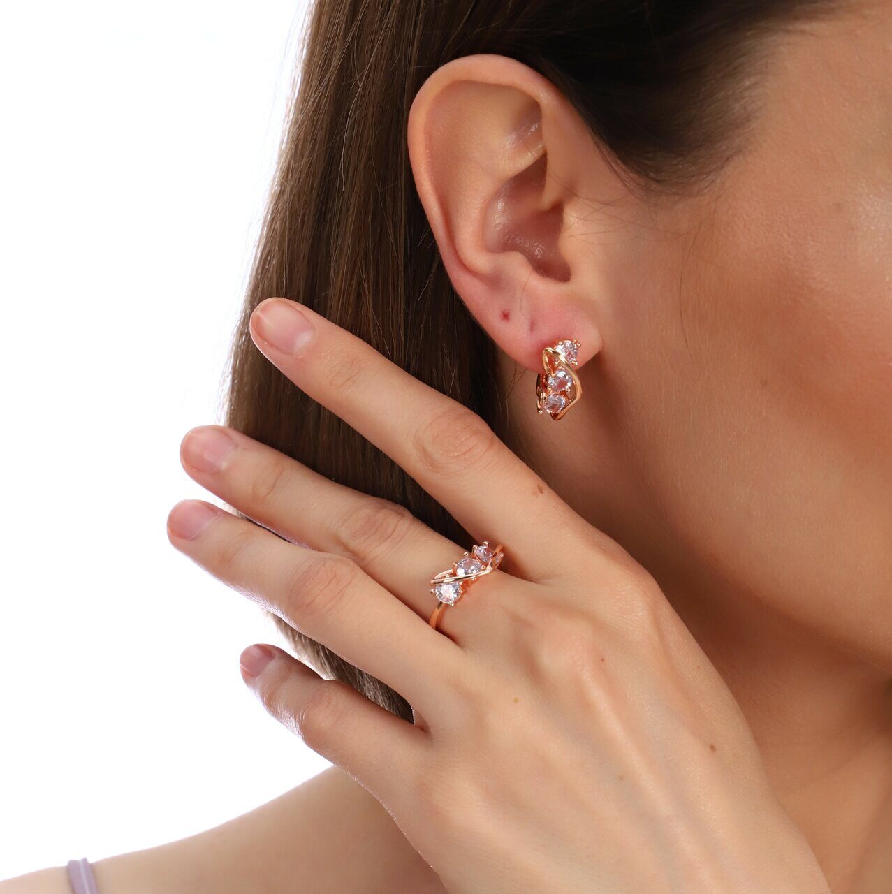 Описание Размер кольца: 18. Размер серёжек: 1,7*0,8 см. Замок: английский. Материал: металл, кристалл. Вес: 8 гр.