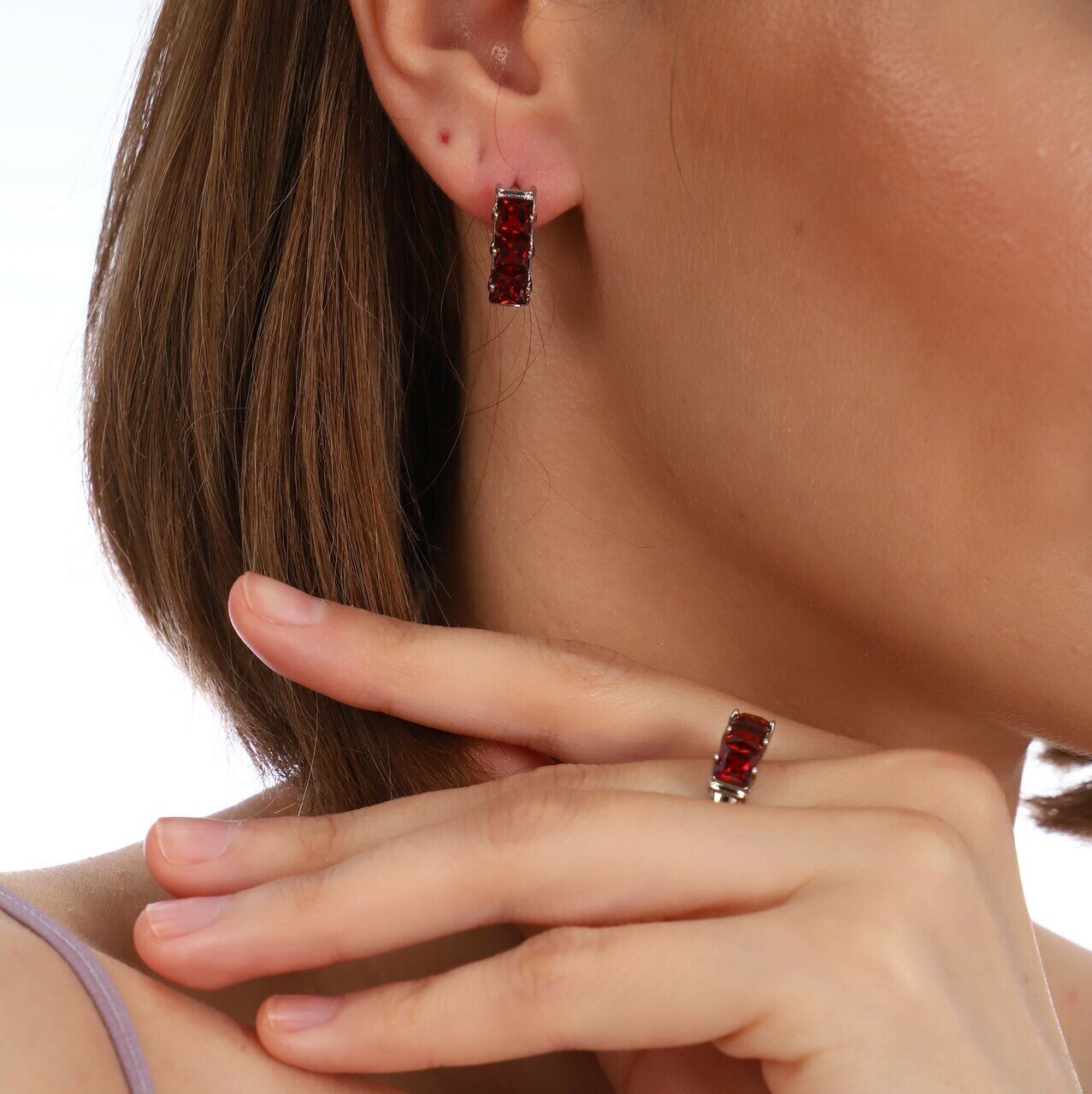 Комплект коллекция "Дубай", покрытие посеребрение с камнем, цвет красный, серьги, кольцо р-р 17, Е6164, арт.747.633