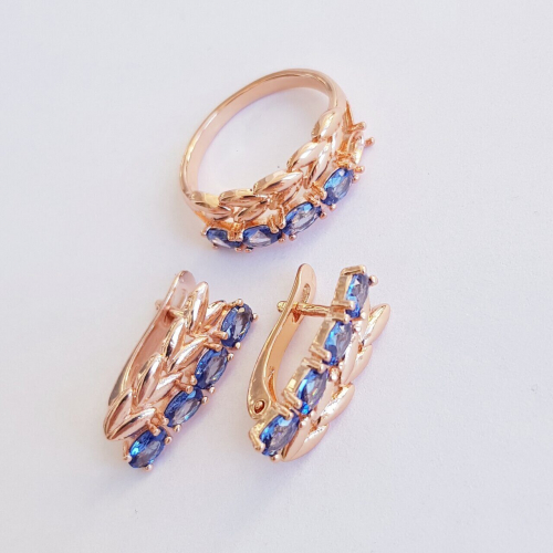 Описание Размер кольца: 18. Размер серёжек: 2*0,7 см. Замок: английский. Материал: металл, кристалл. Вес: 7 гр.