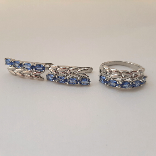 Комплект коллекция "Дубай", покрытие посеребрение с камнем, цвет синий, серьги, кольцо р-р 18, Е8184 , арт.747.921