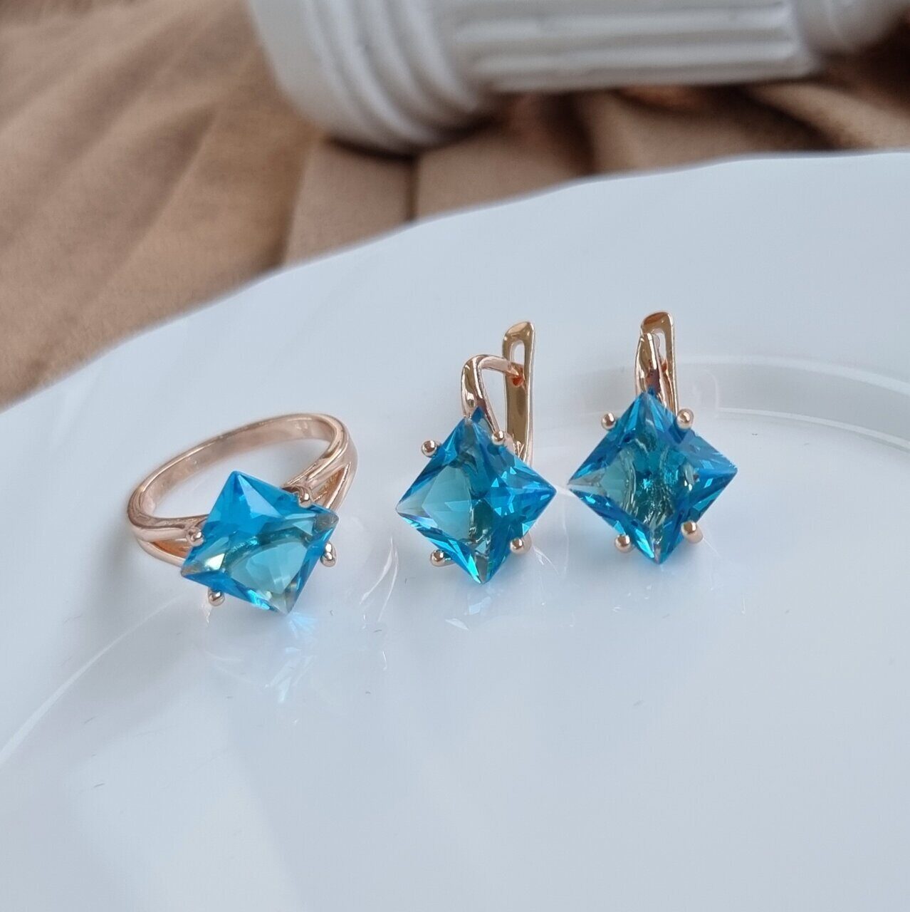 Описание Размер кольца : 19. Размер серёжек: 3*1,5 см. Замок: английский. Материал: металл, камень. Вес: 9 гр.