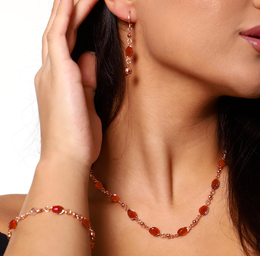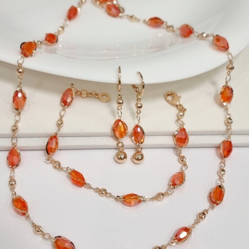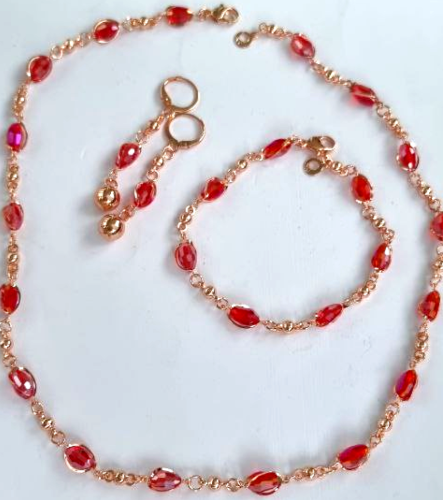Комплект: ожерелье, серьги и браслет, покрытие: дубайское золото, цвет камней: красный, 45123, арт.314.593