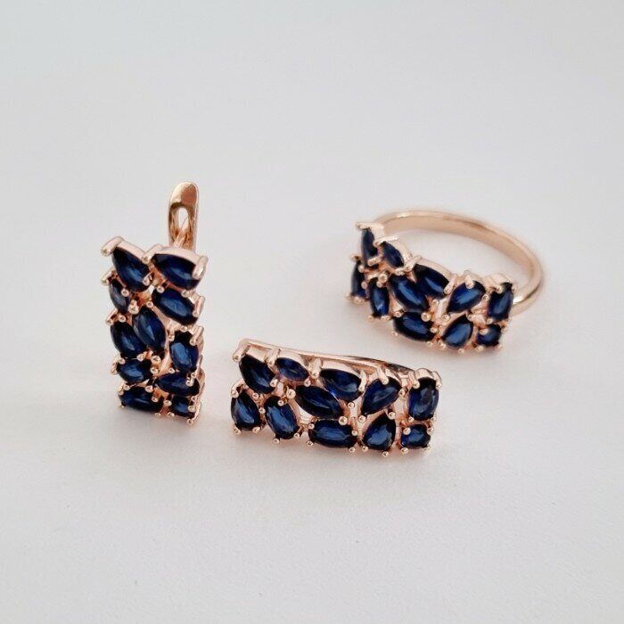 Комплект серьги и кольцо позолота, темно синие камни, р-р 20, 542809 арт.847.727