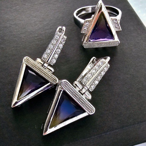 Комплект украшений ювелирной бижутерии р-р 17,5 с покрытием посеребрение, вставка: фианиты, Уценка, арт.08.1662