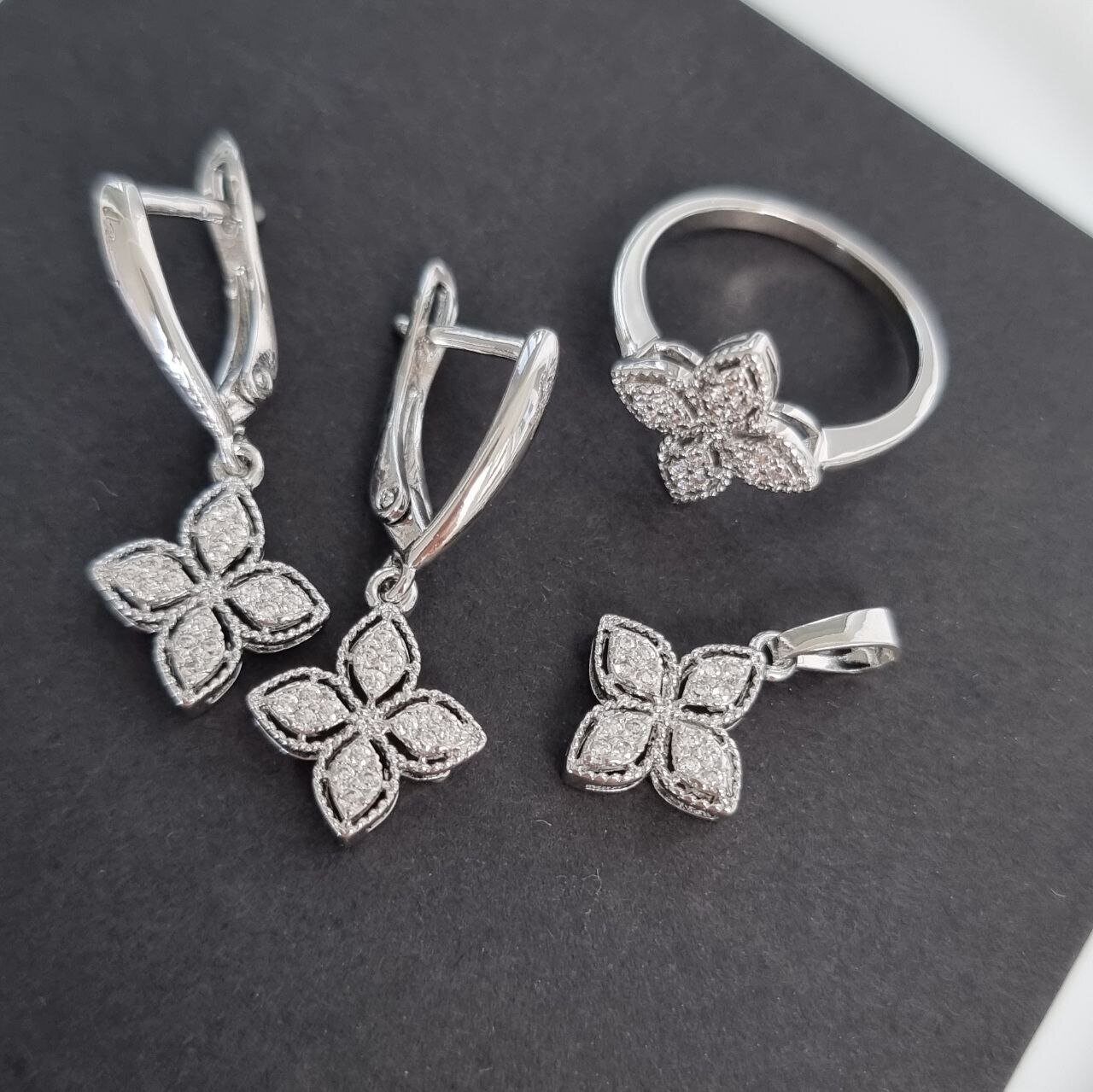 Комплект украшений ювелирной бижутерии р-р 17,5 с покрытием посеребрение, вставка: фианиты, арт.216.035-17,5