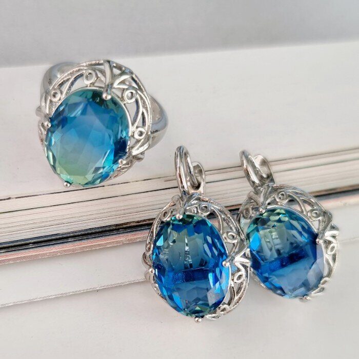 Комплект украшений ювелирной бижутерии р-р 17 с покрытием посеребрение, вставка: камень голубой переливающийся, 0970, арт.216.013-17