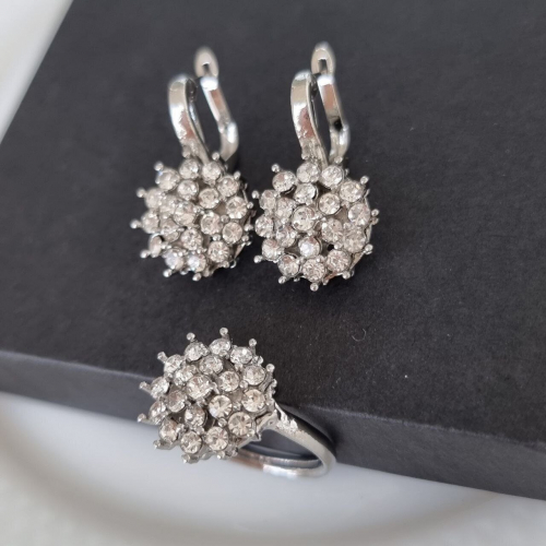 Комплект украшений ювелирной бижутерии р-р 18,5 с покрытием посеребрение, вставка: фианиты, арт.216.034-18,5