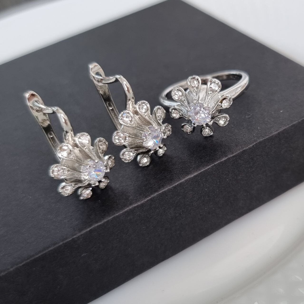 Описание Размер серьги: 2*1,2 см. Замок: английский. Вес комплекта: 9 гр.