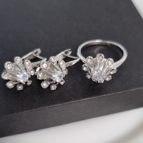 Комплект украшений ювелирной бижутерии р-р 18 с покрытием посеребрение, вставка: фианиты, арт.216.036-18