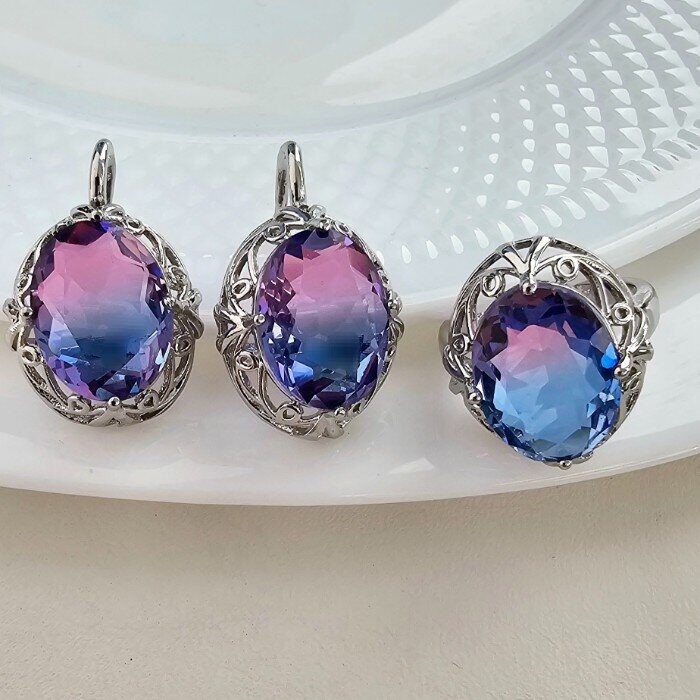 Комплект украшений ювелирной бижутерии р-р 18 с покрытием посеребрение, вставка: камень сиреневый переливающийся, 0970, арт.216.014-18