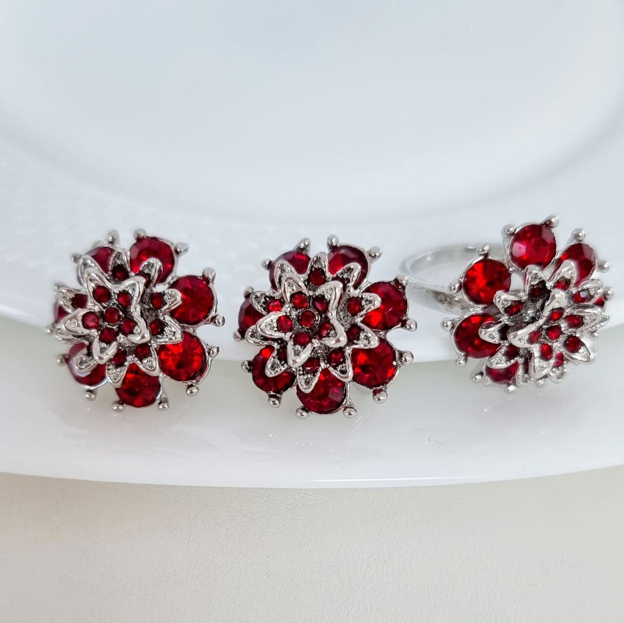 Комплект украшений ювелирной бижутерии р-р 18 с покрытием посеребрение, вставка: красный камень, арт.216.020-18
