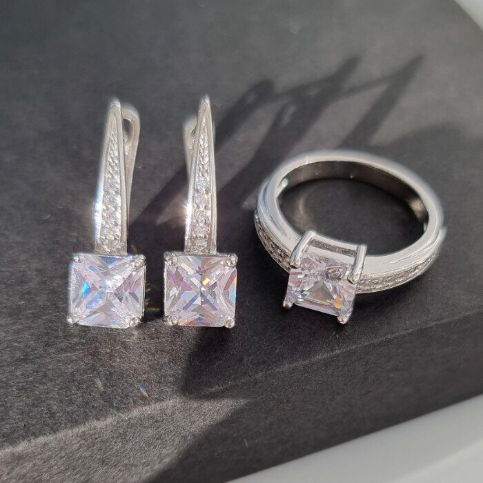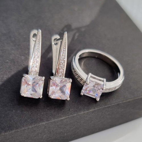 Комплект украшений ювелирной бижутерии р-р 18 с покрытием посеребрение, вставка: прозрачный камень, 0800, арт.216.021-18