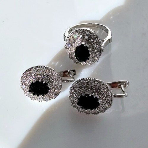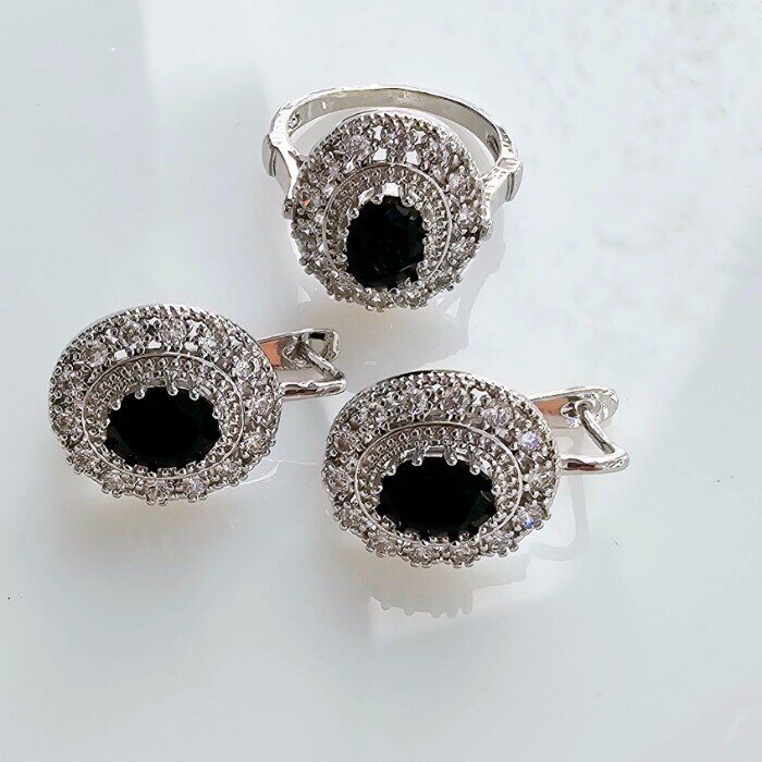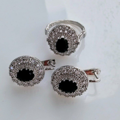 Комплект украшений ювелирной бижутерии р-р 19,5 с покрытием посеребрение, вставка: черный камень, 0970, арт.216.017-19,5