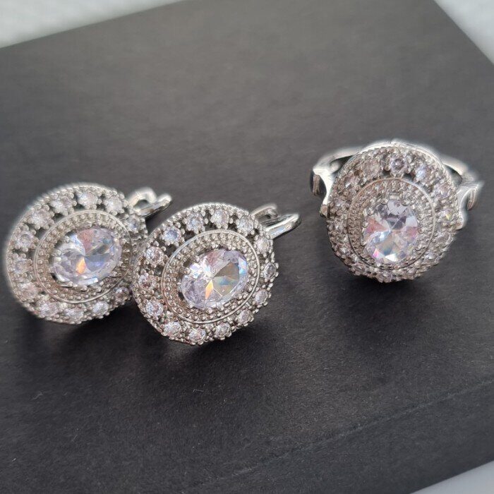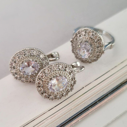 Комплект украшений ювелирной бижутерии р-р 19,5 с покрытием посеребрение, вставка: прозрачный камень, 0970, арт.216.018-19,5