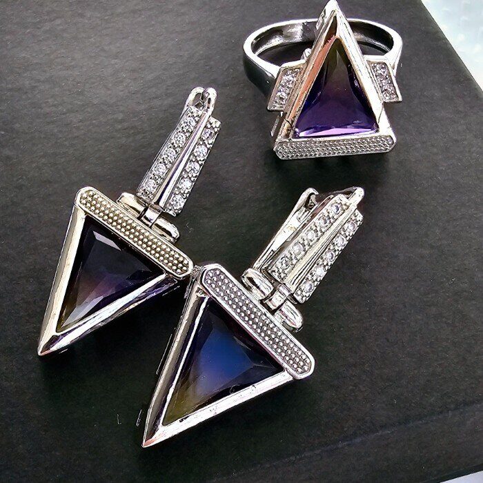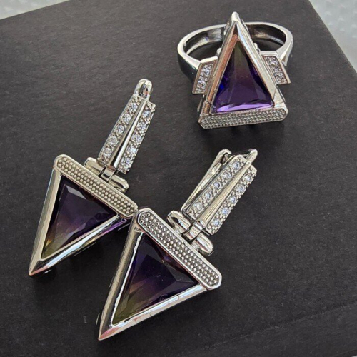Комплект украшений ювелирной бижутерии р-р 19,5 с покрытием посеребрение, вставка: сиреневый камень,01120, арт.216.027-19,5