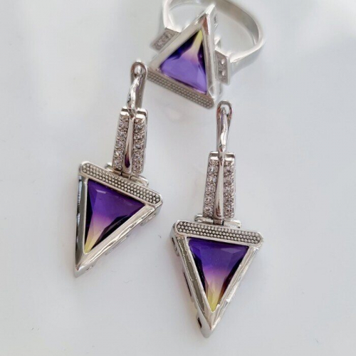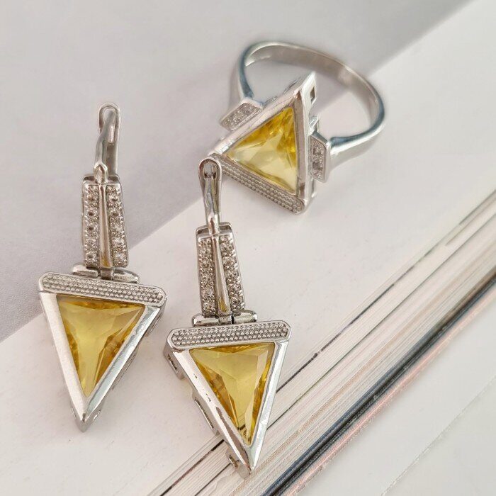 Комплект украшений ювелирной бижутерии р-р 20 с покрытием посеребрение, вставка: желтый камень, 01120, арт.216.026-20