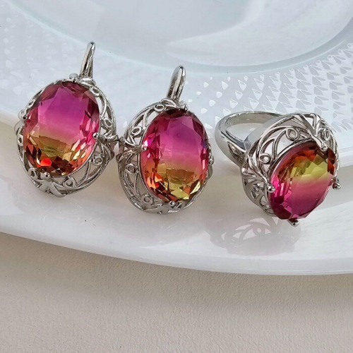 Комплект украшений ювелирной бижутерии р-р 19 с покрытием посеребрение, вставка: камень розовый с желтым переливающийся, 0970, арт.216.015-19