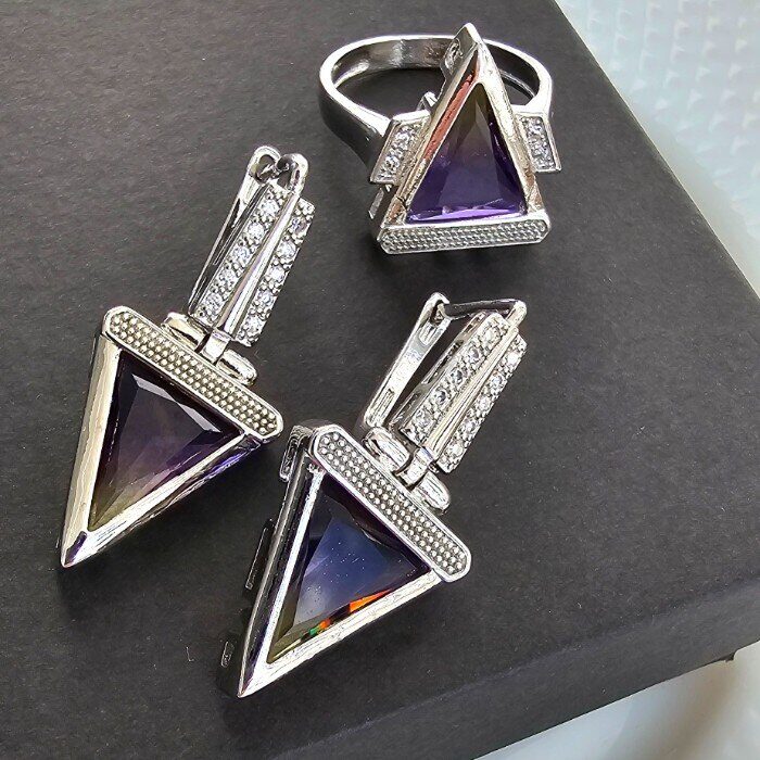 Комплект украшений ювелирной бижутерии р-р 19 с покрытием посеребрение, вставка: сиреневый камень,01120, арт.216.027-19