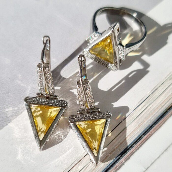 Комплект украшений ювелирной бижутерии р-р 19 с покрытием посеребрение, вставка: желтый камень, 01120, арт.216.026-19
