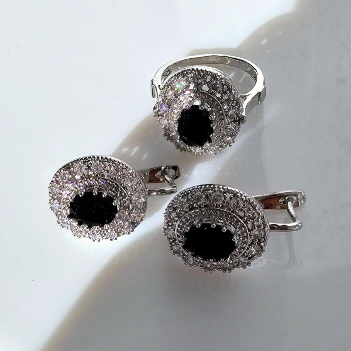 Комплект украшений ювелирной бижутерии р-р 20 с покрытием посеребрение, вставка: черный камень, 0970, арт.216.017-20