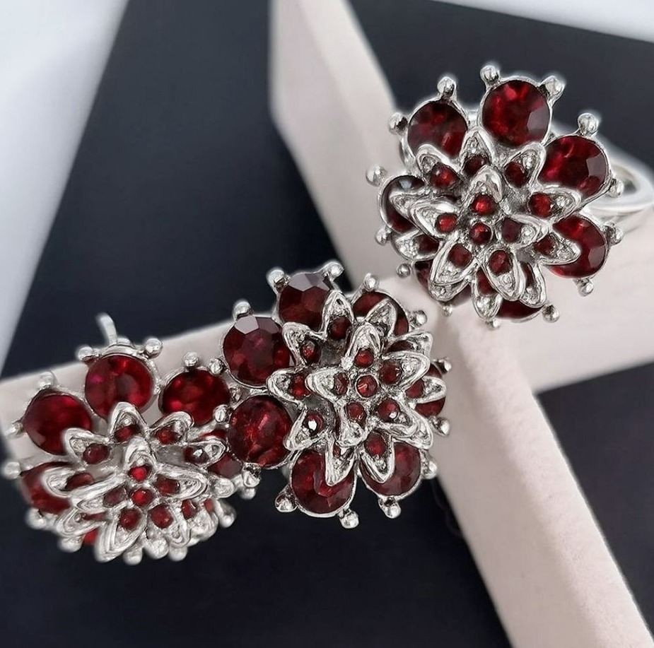 Комплект украшений ювелирной бижутерии р-р 20 с покрытием посеребрение, вставка: красный камень, арт.216.029-20