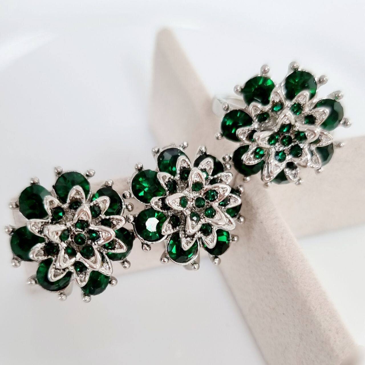 Комплект украшений ювелирной бижутерии р-р 20 с покрытием посеребрение, вставка: зеленый камень, арт.216.028-20