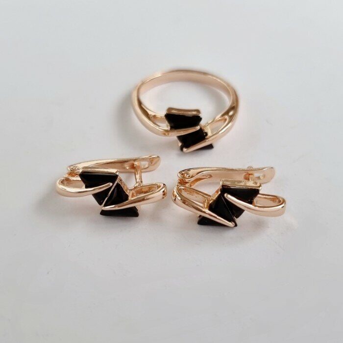 Комплект коллекция "Дубай", покрытие позолота, цвет камней: черный, 18995, Уценка, арт.08.1971