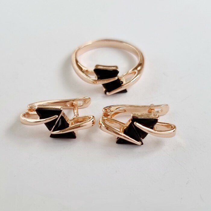 Комплект коллекция "Дубай", покрытие позолота, цвет камней: черный, 18995, Уценка, арт.08.1972