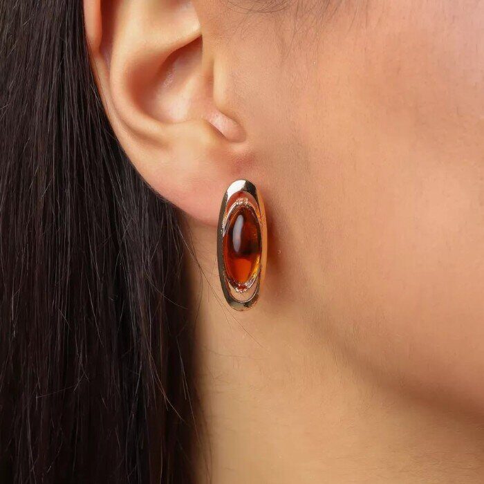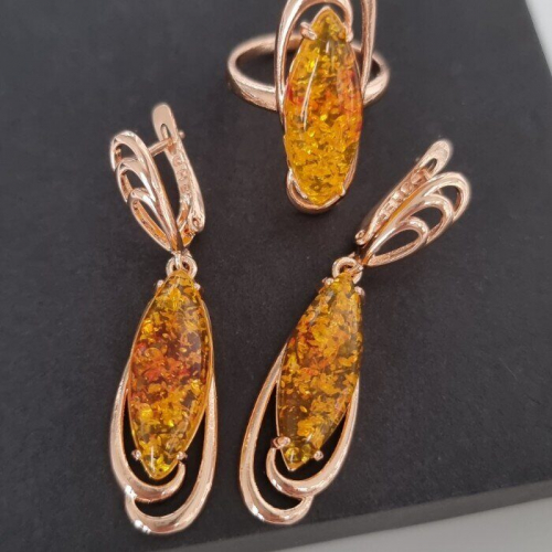 Комплект ювелирная бижутерия коллекция "Дубай" серьги и кулон, покрытие: позолота, вставка: иск. янтарь, № 019722, Уценка! арт.08.1241