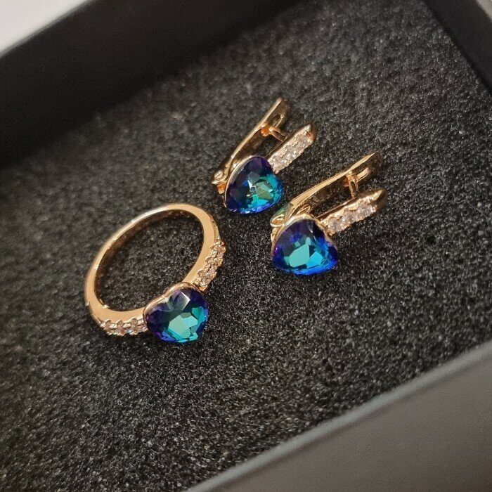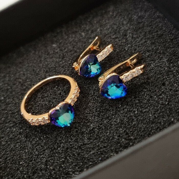 Описание Размер серьги: 1.6*0.8 см. Размер кольцо: размер сердечка 0.8 см. Замок: английский.