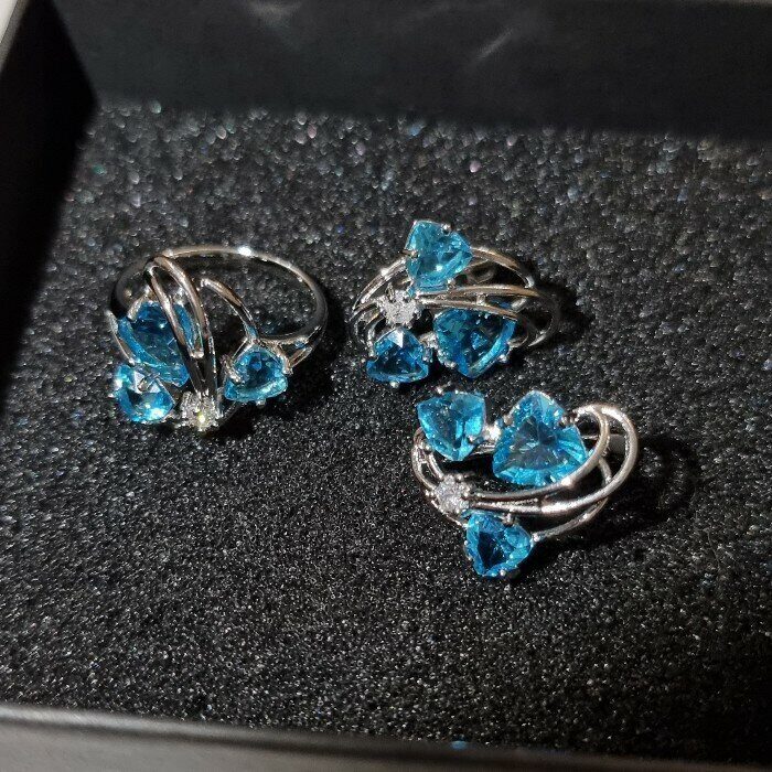 Комплект ювелирная бижутерия, серьги и кольцо посеребрение, камни цвет голубой, р-р 19, 77221 арт.847.917