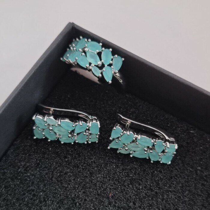 Комплект ювелирная бижутерия, серьги и кольцо посеребрение, камни цвет тиффани, р-р 18, 542809 арт.847.841