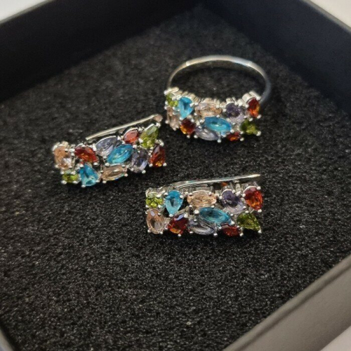 Описание Размер серьги: 2*1 см. Размер кольцо: ширина цветной части 1 см, длина цветной части: 2 см. Замок: английский.