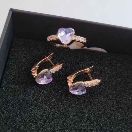 Описание Размер серьги: 1.6*0.8 см. Размер кольцо: размер сердечка 0.8 см. Замок: английский.